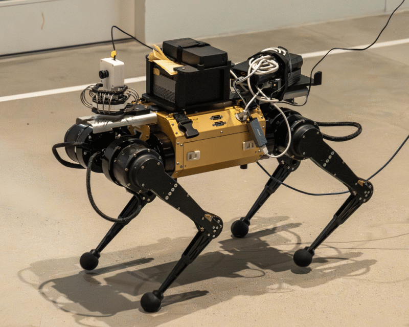 本取り組みでは、不整地や危険環境での活用が期待される国産四脚ロボット「AQURO」を用い、